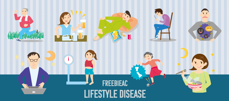 生活習慣病とは、食習慣や運動習慣、休養、喫煙、飲酒などの生活習慣が原因で発症や進行に関与する疾患群です。